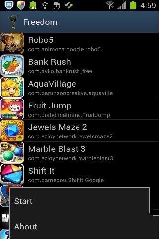 6、然后我们选择想要进行内购破解的游戏,等待一会后游戏就会自动打开(注意这里,你也可以选择安卓内购插件Freedom中的Start功能,打开所有游戏的内购功能,然后从任意界面进入游戏即可);