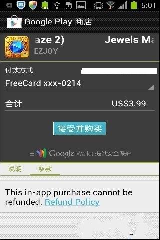 4、我们选择付费方式为【FreeCard xxx】,然后点击接受并购买;