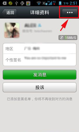 2)点击要删除的黑名单用户,再点击右上角的“…”。(如下图所示)