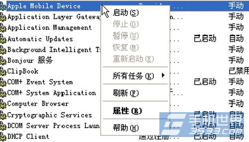 2)弹出的新界面是系统服务管理,如果你的电脑里面安装过iTunes,那一定可以找到“Apple mobile device”和“Bonjour” 这两个服务项。