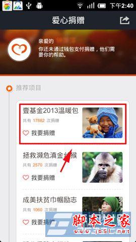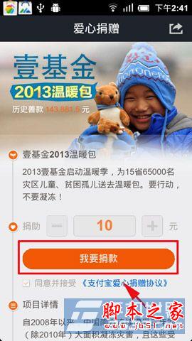 3)找到要捐赠的对象,打开后输入要捐赠的金额再点击“我要捐款”。(如下图所示)