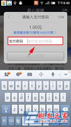 3)可以选择付款的方式,最后输入支付密码,那么你就成功捐赠了。(如下图所示)