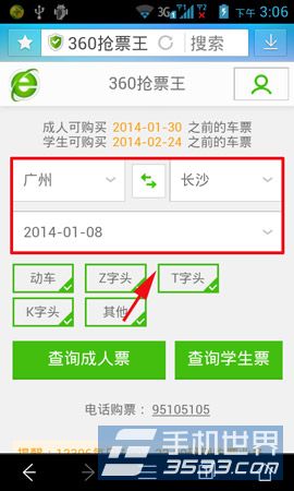 2)登录12306后点输入你的起始地和目的地,并输入日期和火车类型。