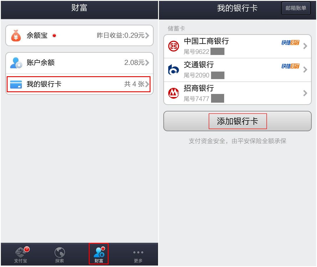 通过支付宝钱包,已实名用户如何开通信用卡快捷支付