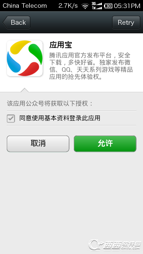 打开应用宝软件,可以看到上面有一个微信5.2的横幅。