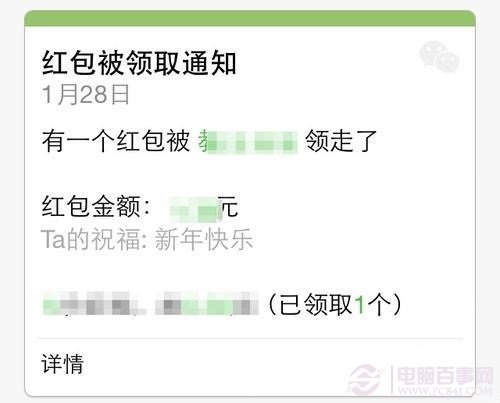 当群里有好友领取了红包以后,微信会给我们发通知信息,如下图所示:
