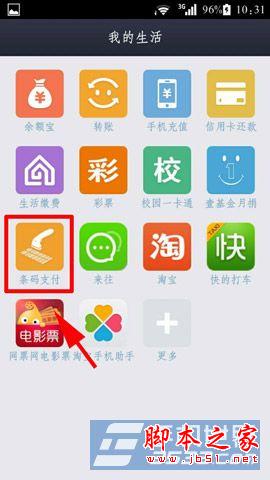 1)打开支付宝钱包,进入支付宝钱包后点击右上角的“我的生活”,然后点击“条码支付”。(如下图所示)