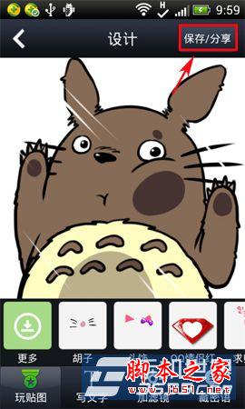 2)在进入设计界面,对头像进行设计,完成后,点击“保存/分享”按键。这样头像淘淘的设计就完成了!(如下图所示)