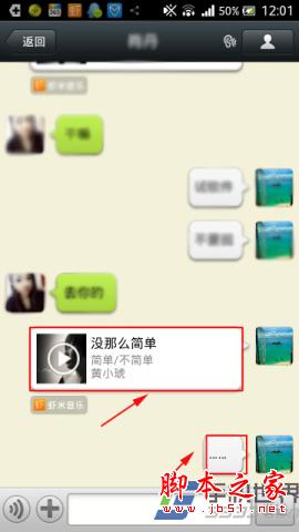 3)点击完“点歌给微信好友”,登录自己的微信号,挑选自己的好友,也可以在空白的地方写上自己想说的话,之后按“分享”,最好点击“返回微信”。右边的图可以看到你分享成果。(如下图所示)