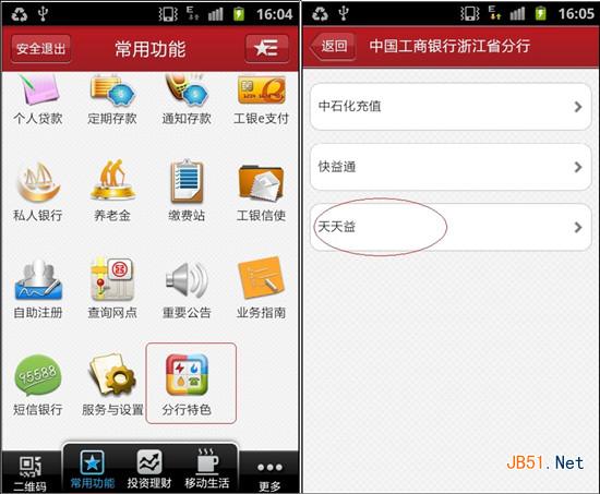 1、登陆手机银行,选择“分行特色”——“天天益”;