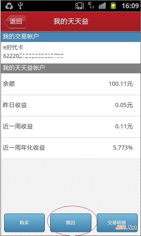 1、选择“天天益”——“购买/赎回/查询”;点击【赎回】。