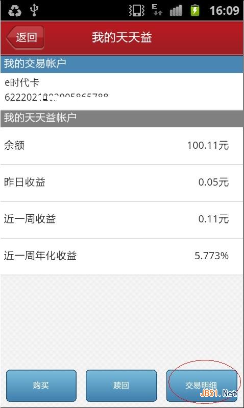 1、选择“天天益”——“购买/赎回/查询”;点击【交易明细查询】。