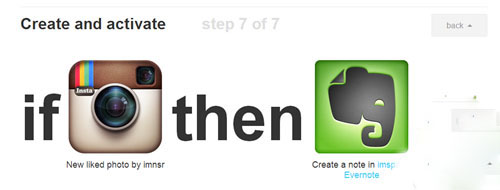 然后在ifttt上连接Instagram和你想要保存的平台,如Dropbox、Flickr等。在此,以印象笔记为例。ifttt虽不支持中文,但指示操作的英文并不难,相信大家都能大致明白所讲的意思。然后跟着页面提示进行操作就可以了。