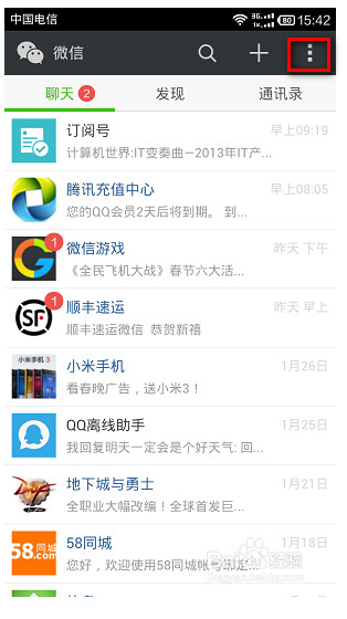 进入新版微信发现以前的退出方法貌似不行了,点击右上角的菜单图标,如下图。
