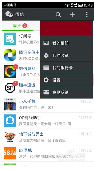点击后,下拉菜单中,选择设置,如图。