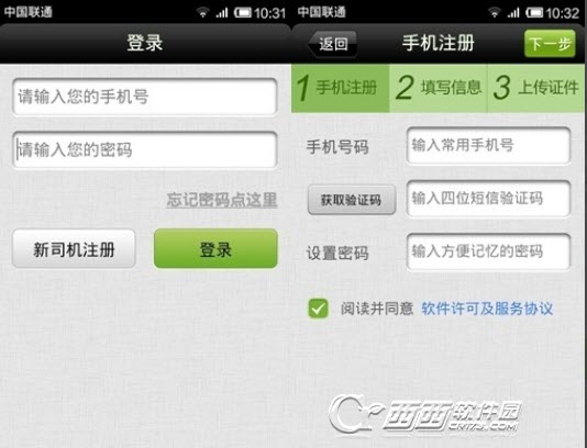 1.司机用户安装司机版后,首次运行输入个人和车辆的相关信息注册。