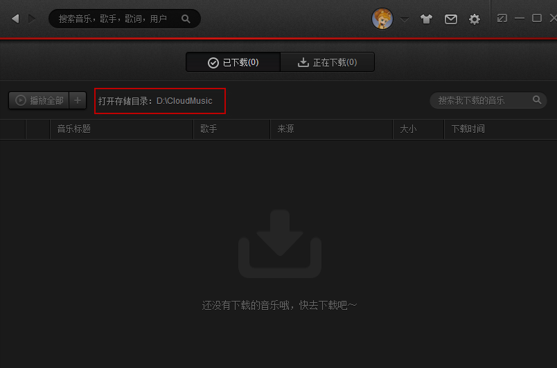 这里会显示你下载的所有音乐,上面有个打开存储目录,这个目录就是你下载的歌曲的存放位置,可以根据自己的需要修改。