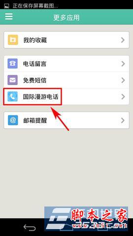2)进入更多应用界面,点击“国际漫游电话”按键,在进入国际漫游电话界面后,按“免费拨打国际漫游电话”按键。(如下图所示)