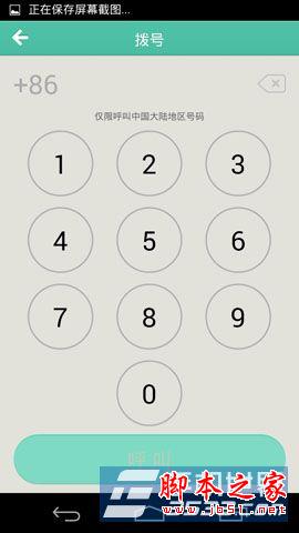 3)在进入国际漫游电话界面,点击“拨号”按键,进入拨号界面后,输入号码按“呼叫”按键即可。(如下图所示)