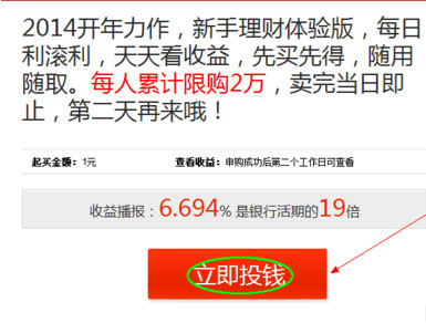 三、成功登录以后,百度理财页面中点击“我要投钱”按钮,如图所示