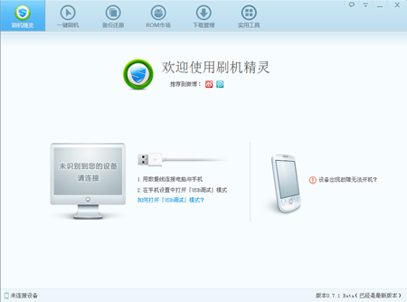准备工作:下载安装刷机精灵,安装后启动的界面如下: