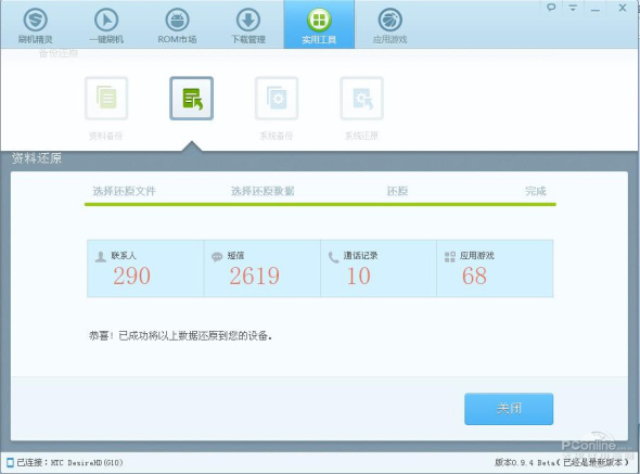 大概10分钟左右,手机的联系人等信息会失而复得!这时候,你可以享受新系统带来的乐趣。到此整个刷机精灵刷机教程也基本完成。