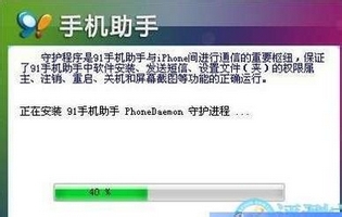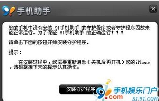2、安装守护程序:第一次安装pxl格式的软件,91手机助手会提示你先安装91手机助手的守护程序,安装或者升级。