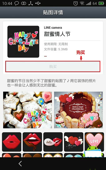 以下是LINE相机贴图购买步骤: