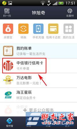 相关教程:支付宝钱包在线申请中信信用卡方法