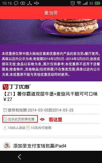 2、到店里之后,给调转到该界面,给他们店员看就可以享受优惠了。