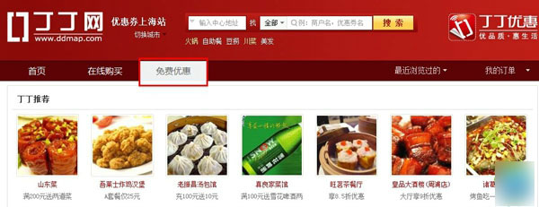 1、进入丁丁优惠官网,点击上方的免费优惠。