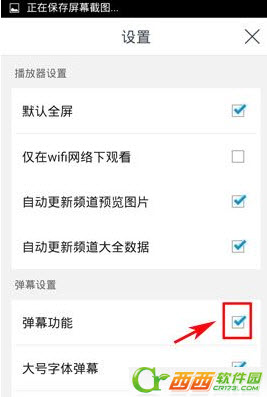 2)在进入我的界面,点击“设置”按键,进入设置界面,将弹幕功能的勾选取消即可。(如下图所示)