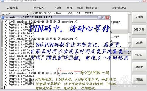 破解中。。时间1个小时或几个小时不等 这种破解方法就是需要时间的 大家一定要有耐心 只要信号好 开wps的路由器 就是时间问题多是可以破解出来的