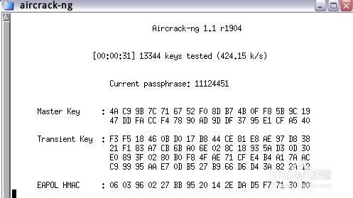 请关注下面IVS数量,如在快速增长一般到(一两万左右)十分钟左右就可以出密码(如果IVS数量一直是0或长时间不动说明对方没有打开电脑,也就是没有客户端,请过一会再试或换其它的网络破解)