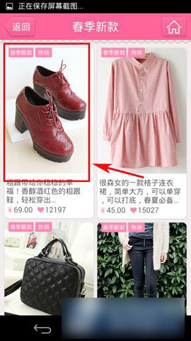 1)首先打开美丽说,在进入找宝贝界面,选择宝贝类型,在进入宝贝界面,选择点击一个商品。(如下图所示)