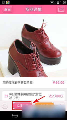 在美丽说网站上选择一件你要买的物品,最后在选择支付方式中,选择微信支付,这样就可以直接减免10块。