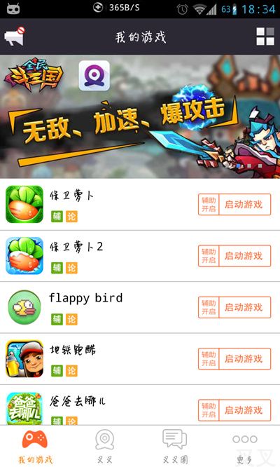 二、打开叉叉助手,点击“我的游戏”界面右上角菜单栏,进入“实用工具”页面;