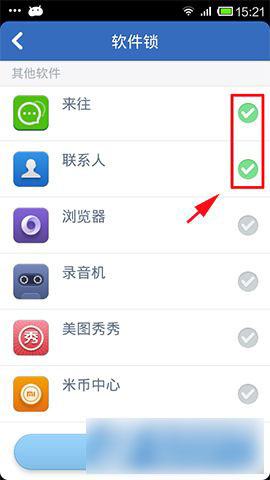 3)再次重复输入刚才的图案密码,出现设置密码成功,即可点击添加你要锁住的软件了。(如下图所示)