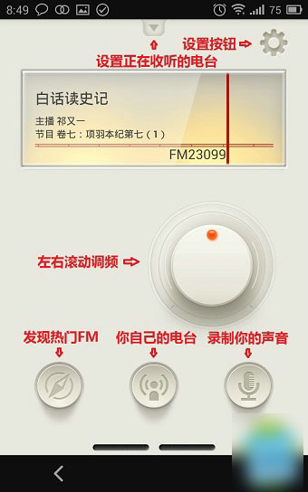8、右下角录制自己的声音,和录制电台界面一样,但是录制声音是直接保存在手机中。