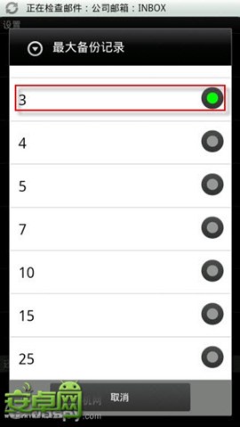 之后应该设置的是最大备份记录,小编的观点是设置三份备份是比较合理的,太少了可能备份到的正好是 有问题的那个版本会无力回天,太多了则会浪费存储空间。最后需要注意的是,如果你用的是非原生ROM 或是日后需要在另一部手机里还原备份,则务必勾上转移系统数据这个选项,否则请不要勾上这一项: