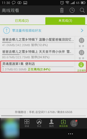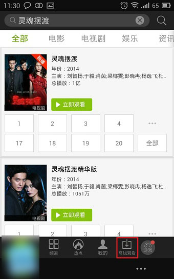 7、之后你可以返回,然后在主界面或者其他界面点击右下角的“离线观看”。