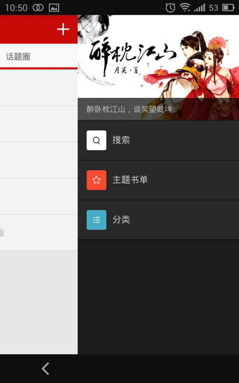 7、右侧的加号按钮,点击后出现搜索、主题书单、分类三项。