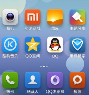 3. 进入小米系统主桌面,什么东东,一股儿“粗粮”的味道哇!哈哈~,开个玩笑。个人还是比较稀罕小米的桌面图标统一风格的,整洁清新大气。。