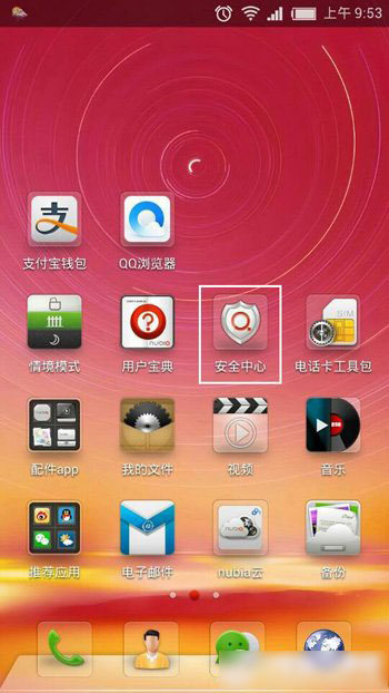 第一步:在手机的应用里面找到安全中心,如下图所示