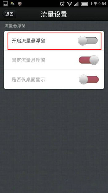 第五步:此时我们发现开启流量悬浮窗的图片是关闭的,我们滑动按钮,如下图所示