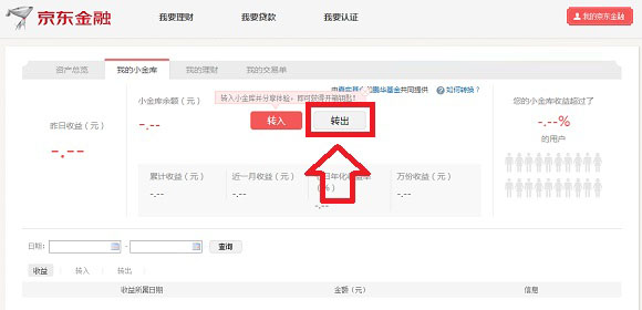 1、将京东小金库内的资金转出至网银钱包;