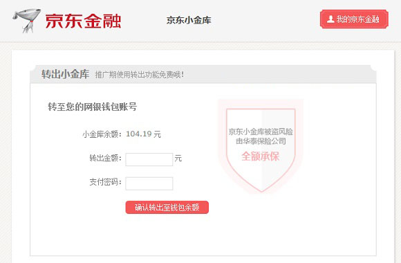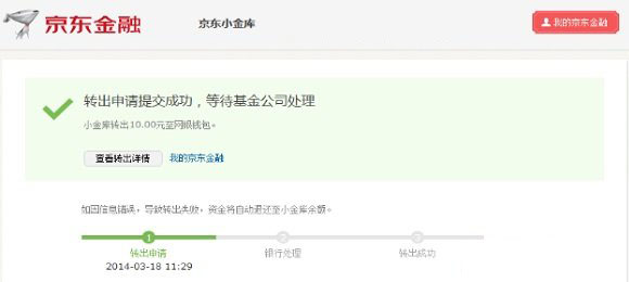 京东小金库转出成功提示