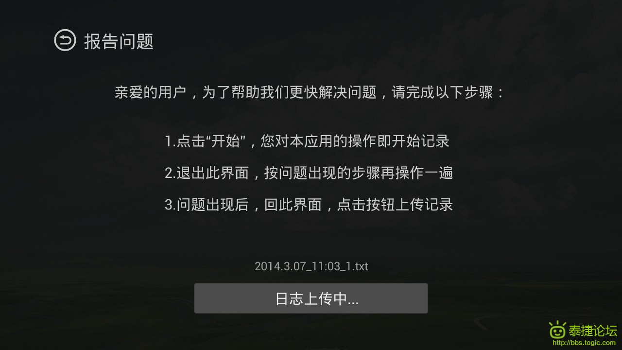 Hi,各位亲爱的机友,为了更快的解决部分机友遇到的播放问题,泰捷视频TV版在“设置”中新增了一个“报告问题”(该功能目前只在泰捷视频TV2.7.2版之后版本上有,如果你没找到这个功能,请先把泰捷视频升级到最新版)只要你按要求反馈报告日志,并将所遇到的问题详细信息发送邮件至1993038090@qq.com,同时积极协助我们跟进解决问题,你就有机会赢取360随身wifi一个,快来跟我们一起把泰捷视频变得更完善吧!