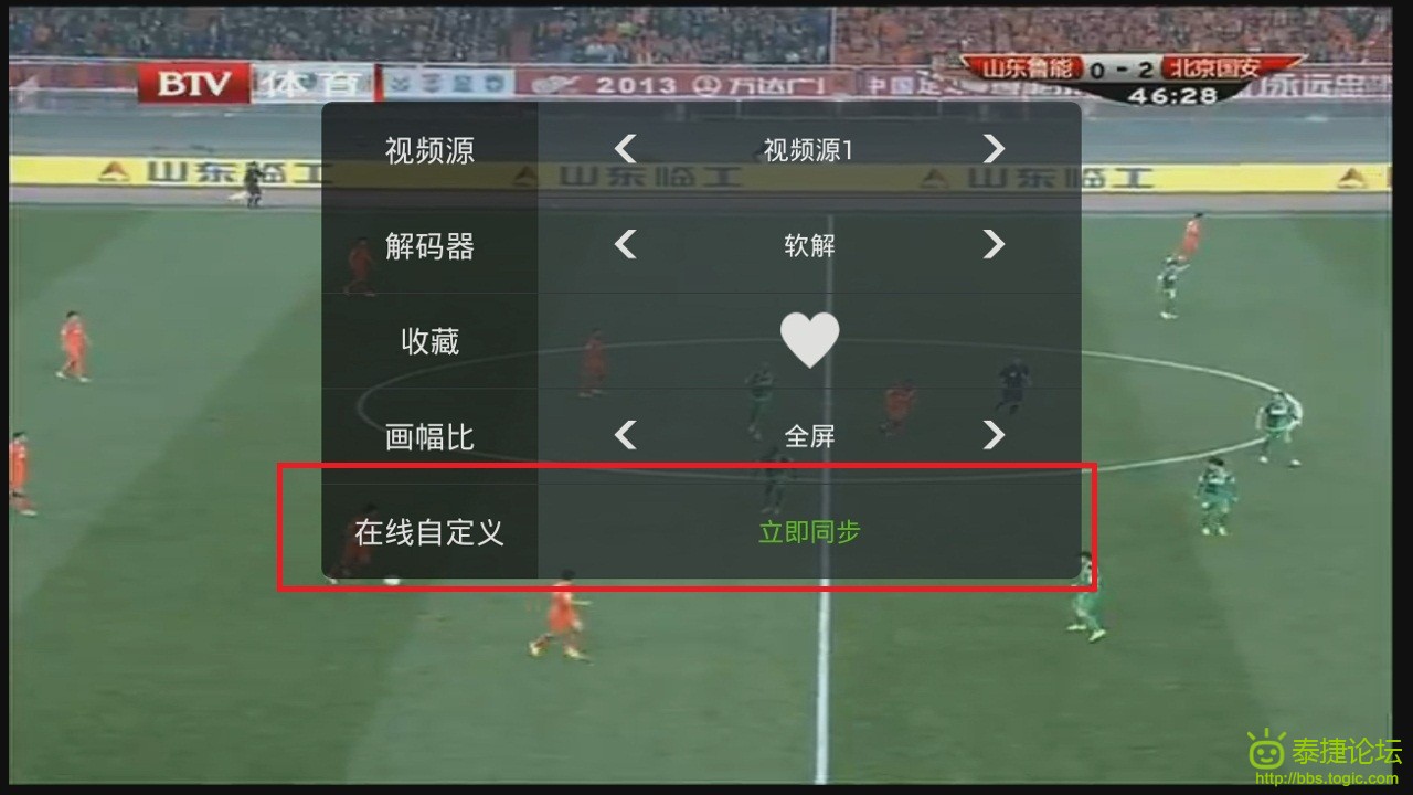 A:TV版2.4之后在直播菜单中增加了在线自定义立即同步按钮,只要进入直播播放界面,按遥控器的菜单键调出选择按钮,选择在线自定义,然后 按ok键立即同步即可。TV2.6版本之后,自定义分类下面的立即同步已经取消掉,目前同步自定义的方法暂时只有这一种。就是在播放状态按遥控器的菜单键,选择在线自定义,立即同步,按ok键即可。