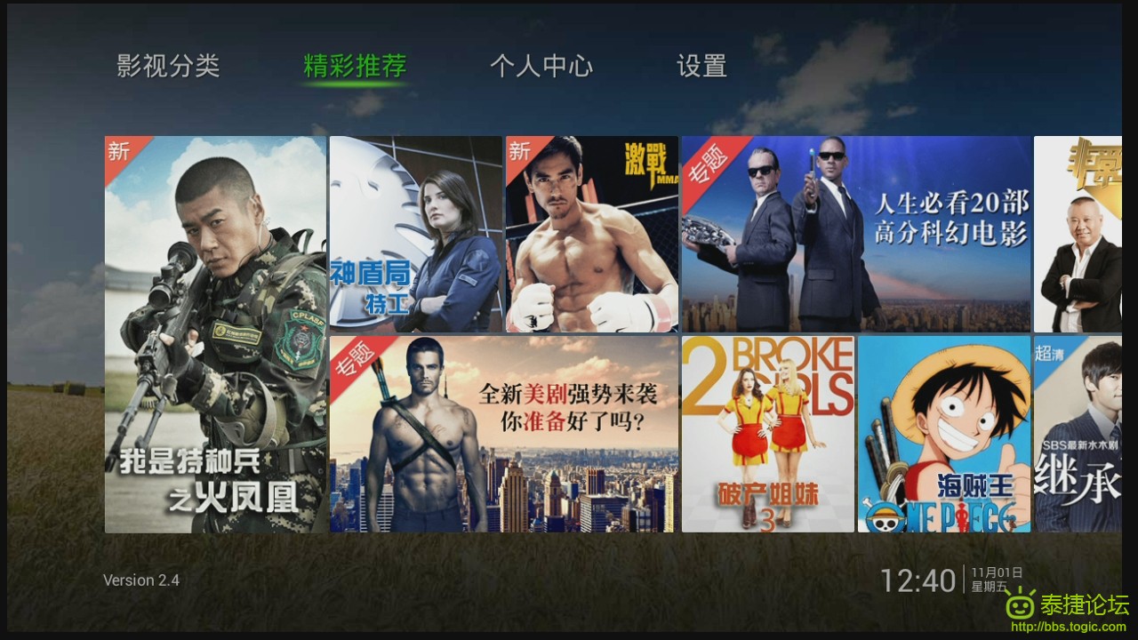 TV2.4版之后增加了专题精彩推荐的功能,让你第一时间看到自己喜欢的精彩影片,无需再花时间查找。